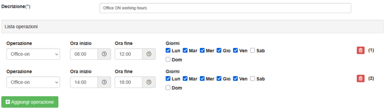 Se un’operazione deve essere programmata in un orario che attraversa la mezzanotte (ad esempio dalle 22:00 alle 6:00), è necessario creare due operazioni: una dall'ora di inizio fino alle 23:45 e una seconda dalle 00:00 fino all'ora di fine.